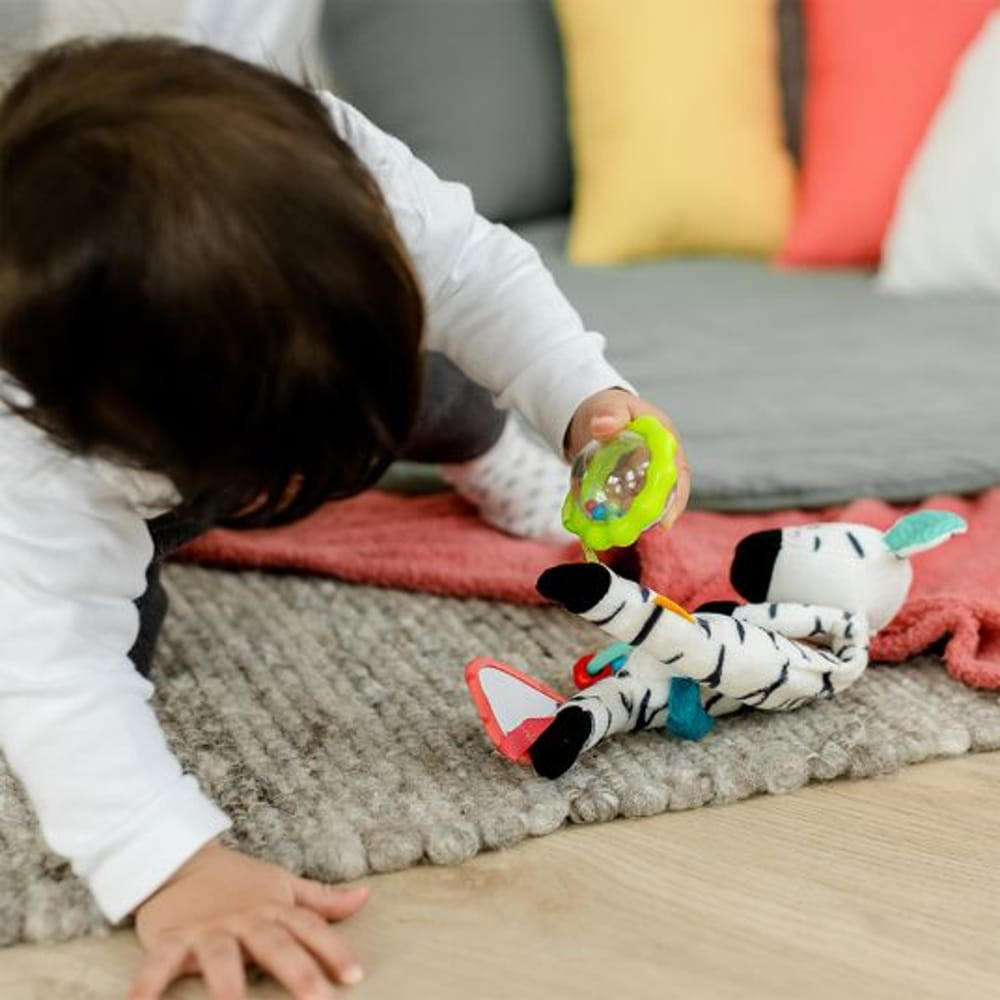 • Érzékszervi fejlesztés: A zebra különböző textúrái és élénk színei serkentik a babák látását, tapintását és hallását.