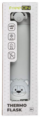 FreeON thermo kulacs 480ml- Szürke oroszlán