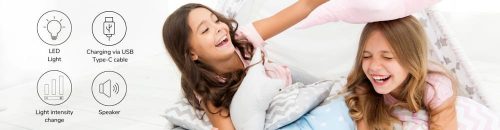 A Bird-Puffin lámpa puha tapintású, meleg, kellemes fénnyel világítja meg a környezetet. Bájos formája kiegészíti a kisgyermekszoba dekorációját. A lámpa jelenléte befolyásolja a gyermek hangulatát, megkönnyíti az elalvás folyamatát. Lehetővé teszi kedvenc zenék vagy mesék lejátszását bármikor és bárhol.