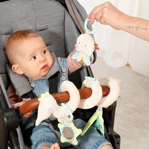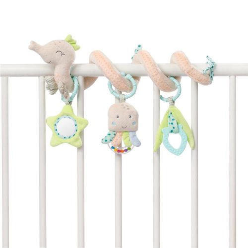 Plüss oktatóspirál függőkkel a fogáshoz, tapintáshoz, játékhoz – fejleszti a tapintást és a finommotorikát – otthon vagy útközben, babáknak és kisgyermekeknek!