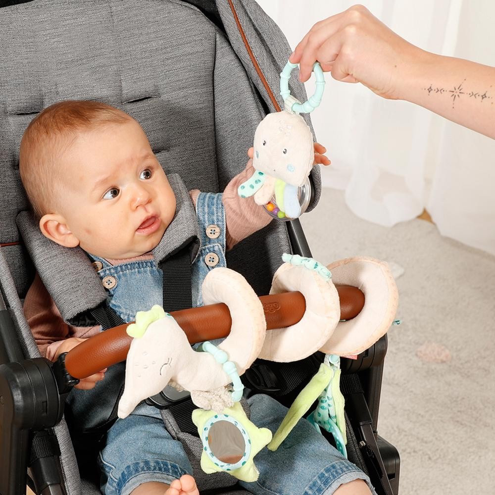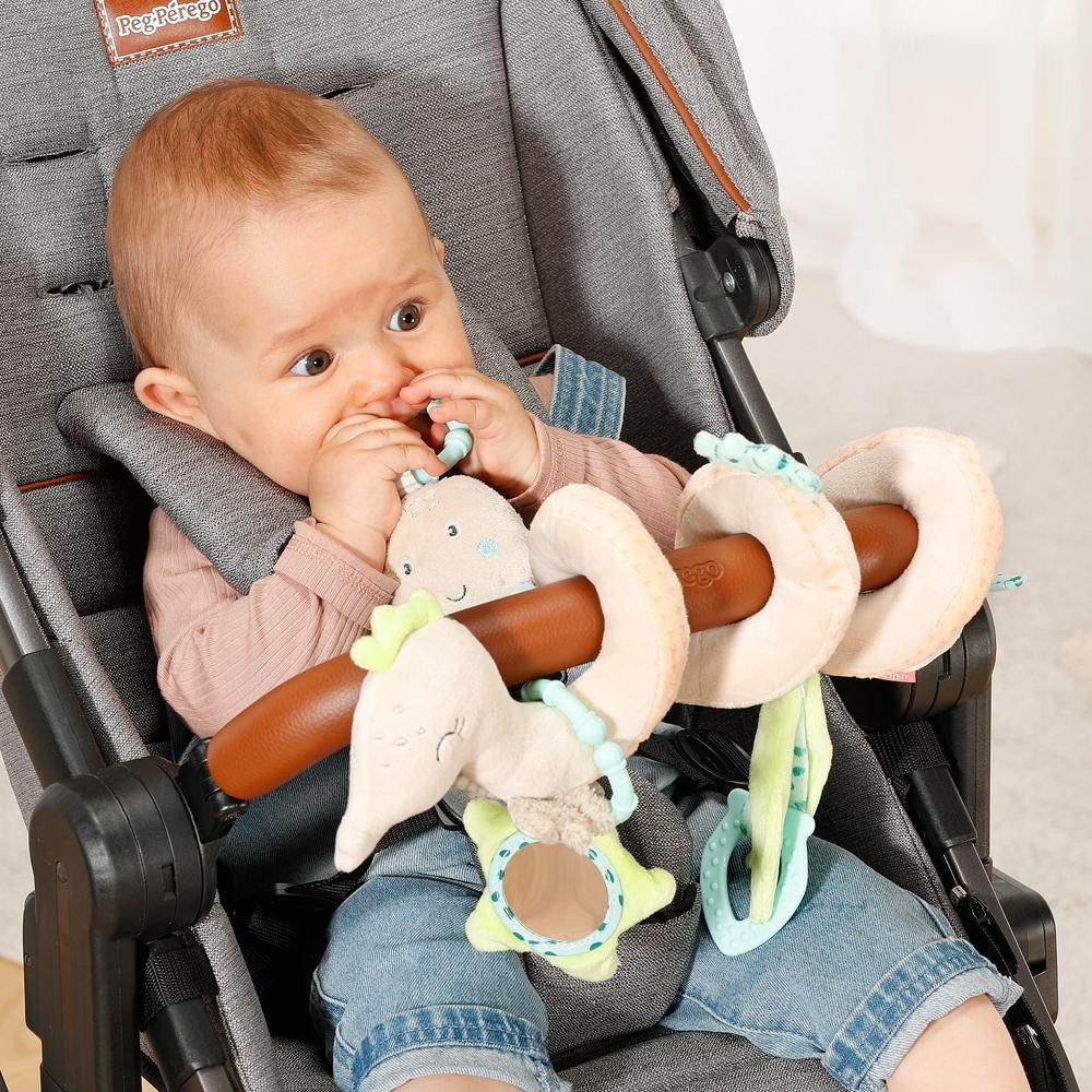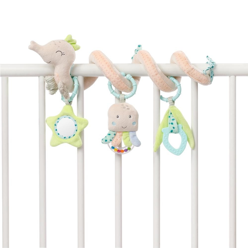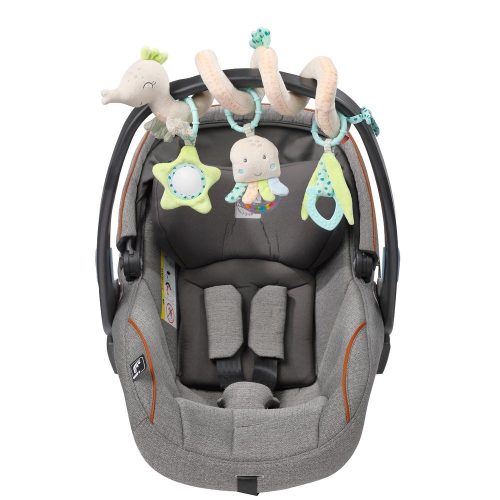 Első felfedezés és játékélmény: az aranyos csikóhal a Children of the Sea kollekcióból számos játéklehetőséget kínál otthon és útközben. A csikóhal formájú spirál a funkciók és színek keverékével figyelemre, játékra és ragaszkodásra ösztönzi a babát, és egyben igazi szemet gyönyörködtető játék. A rejtett gyűrődő papír, a puha ragóka, egy kis tükör, a nyikorgás és a nagy csörgő fejleszti a baba első kéz-szem koordinációját, hallás- és tapintását, valamint motorikus képességeit. A spirállánc könnyen rögzíthető a kiságyra, járókára, babakocsira és babahordozóra a rögzítőzsinóroknak és a mozgatható medáloknak köszönhetően – így minden kaland izgalmas élménnyé válik!