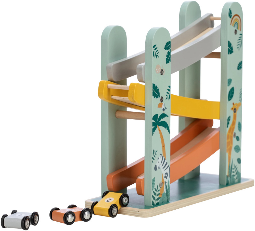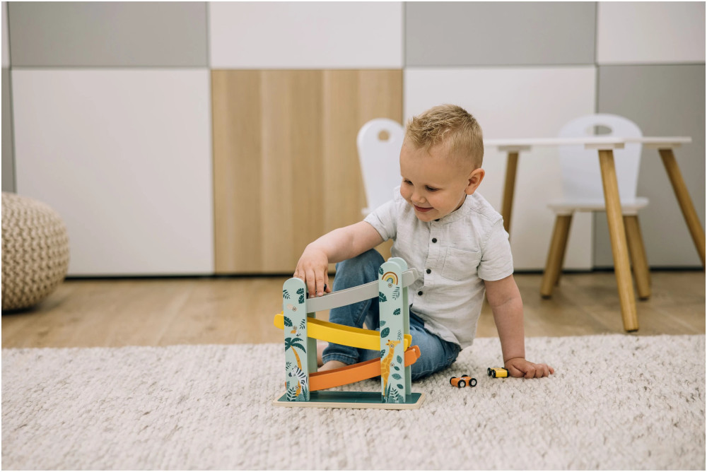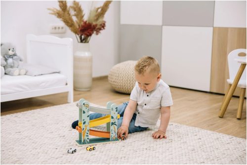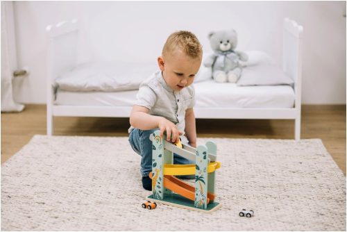 A FreeON free2play- "Autók a lejtőn" egy izgalmas és interaktív fa játékgarázs. Ez a játék nem csak szórakoztató, hanem elősegíti a gyermek kognitív fejlődését és finommotoros készségeit is.