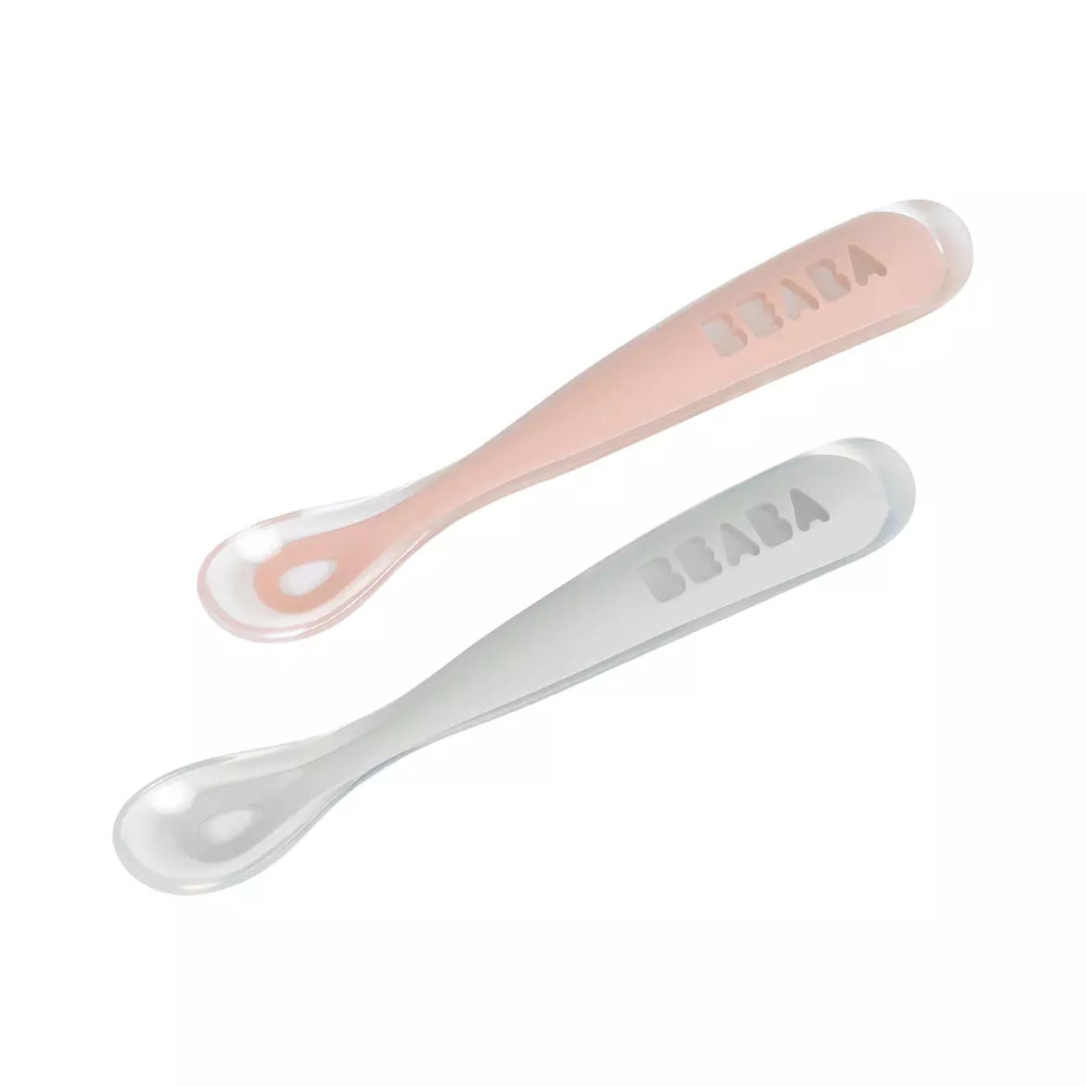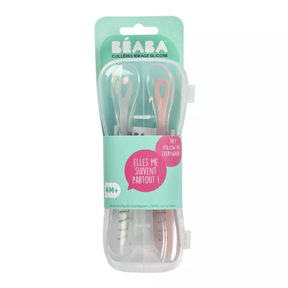 Béaba Ergonomikus Szilikon Hosszú Kiskanál Szett + Doboz- Sötét rózsaszín