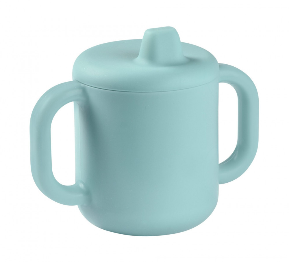 Szilikon bögre, 2 fogantyúval és levehető fedéllel.