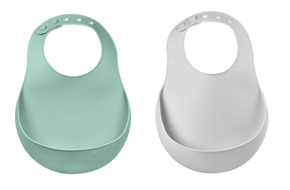Béaba Szilikon Előke szett 2 db - Halvány köd - Zsályazöld