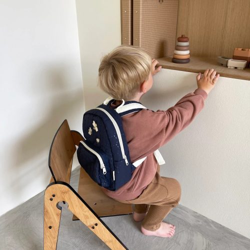 A NUUROO Nikki sötétkék hátizsák az a tökéletes társ minden kis kalandor számára. Legyen szó óvodai kirándulásról vagy egy hétvégéről a nagyszülőknél, ebben a tágas hátizsákban minden elfér, amire szüksége lehet. Kényelmes viseletet biztosít a párnázott hátrésszel, valamint a mellkasnál összecsatolható pántokkal. A 27x22x10 cm-es méretű hátizsák Dániából származik, és 100%-ban újrahasznosított poliészterből készült. Az egyszerű stílus és a praktikus kialakítás ötvözetével a Nikki hátizsák minden gyermek számára tökéletes választás. Az erős és tartós anyag garantálja, hogy a hátizsák hosszú ideig megbízható társ marad a kisebb-nagyobb kalandokban.