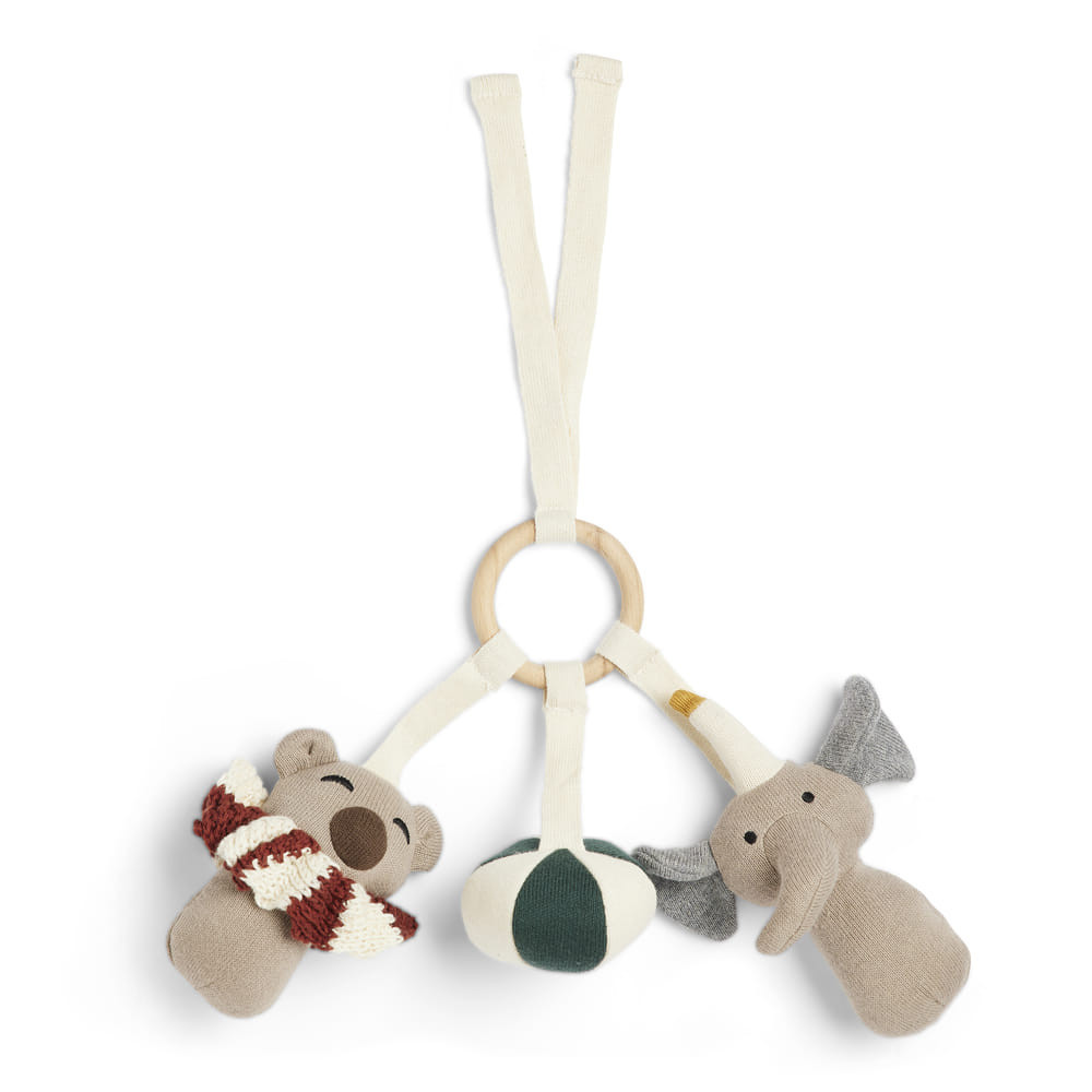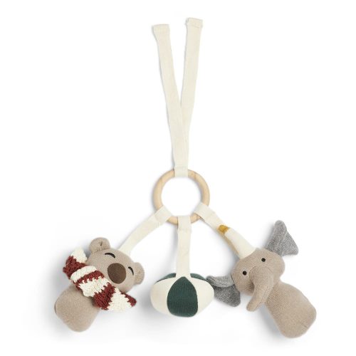 Szórakoztasd a kicsiket ezzel a puha, dob alakú fejlesztő játékkal. Az aranyos kiegészítők belsejében csengő található, amely stimulálja a baba érzékelőit. 100% organikus pamut kötött anyagból készült, újrahasznosított poliészter töltettel. Ideális a tevékenységközpontra.A gyermekülésre vagy a játszószőnyegre akasztva is kiváló kiegészítő is lehet.