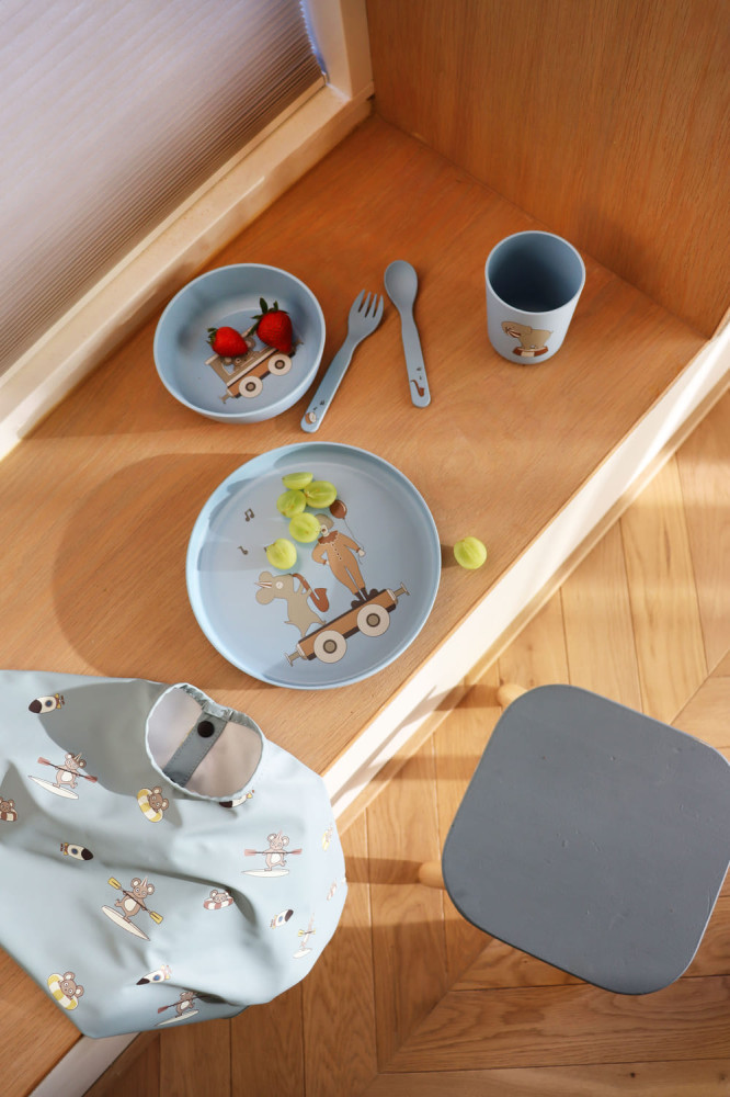 Milas étkészlet 3 részes 100% PLA-ból készült, és mosogatógépben mosható.