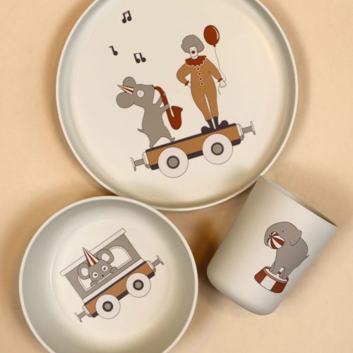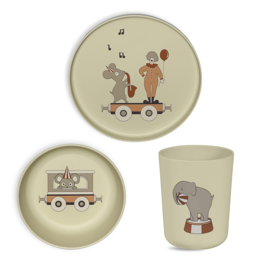 Milas étkészlet 3 részes 100% PLA-ból készült, és mosogatógépben mosható.